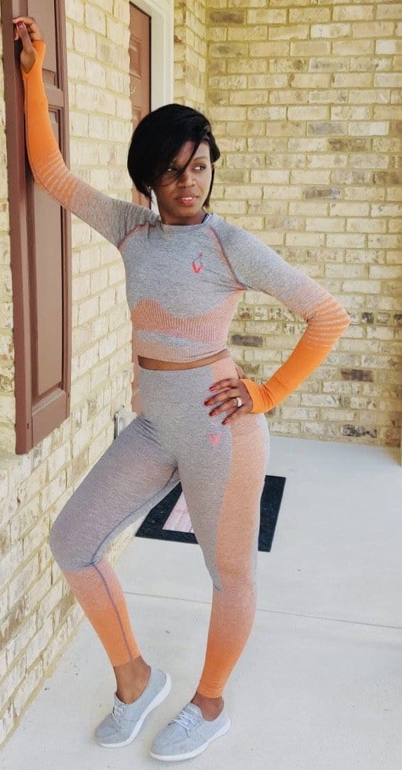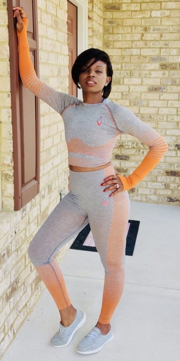 To get a legging that is safe and comfortable as well as brings fashionable outlook for you grabs our new V orange and Grey Activewear set